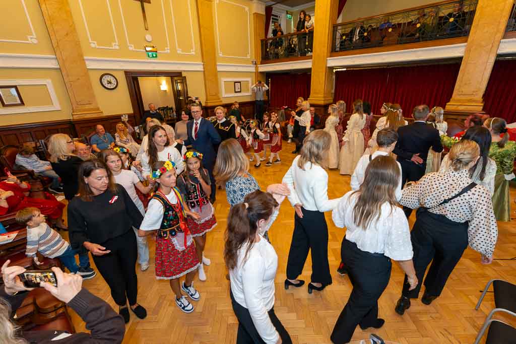 Uroczystość uświetniły występy Zespołu La Danza Antica i Zespołu Lunaris z Młodzieżowy Dom Kultury w Lęborku oraz dzieci z Razem Academy, zachwycając publiczność pięknym śpiewem i energią. Na słowa Pani Dyrektor Teresy Szczepańskiej – „Poloneza czas zacząć” wszyscy wspólnie zatańczyliśmy ten piękny taniec.